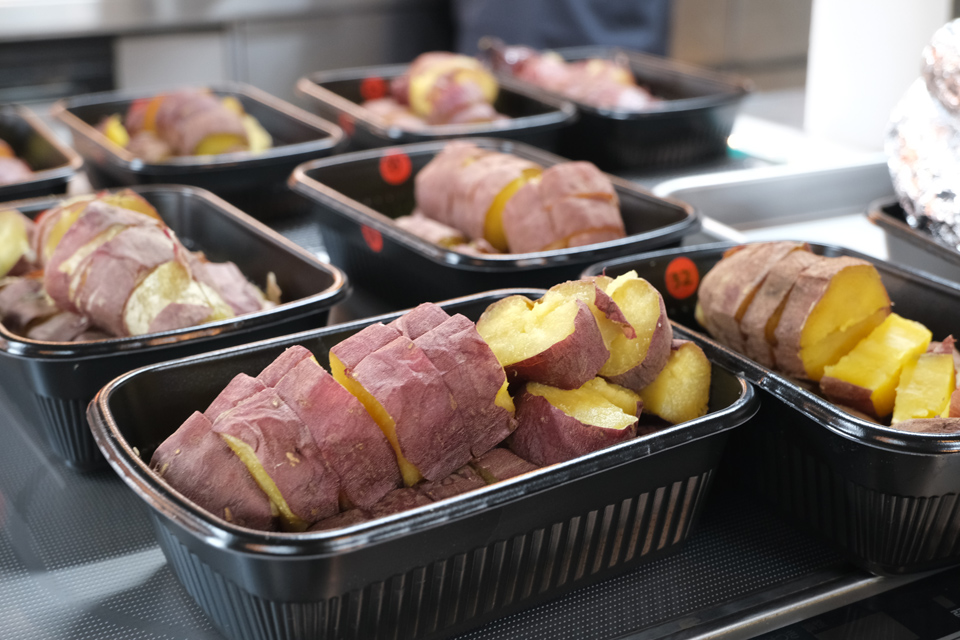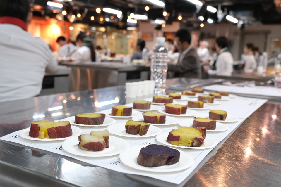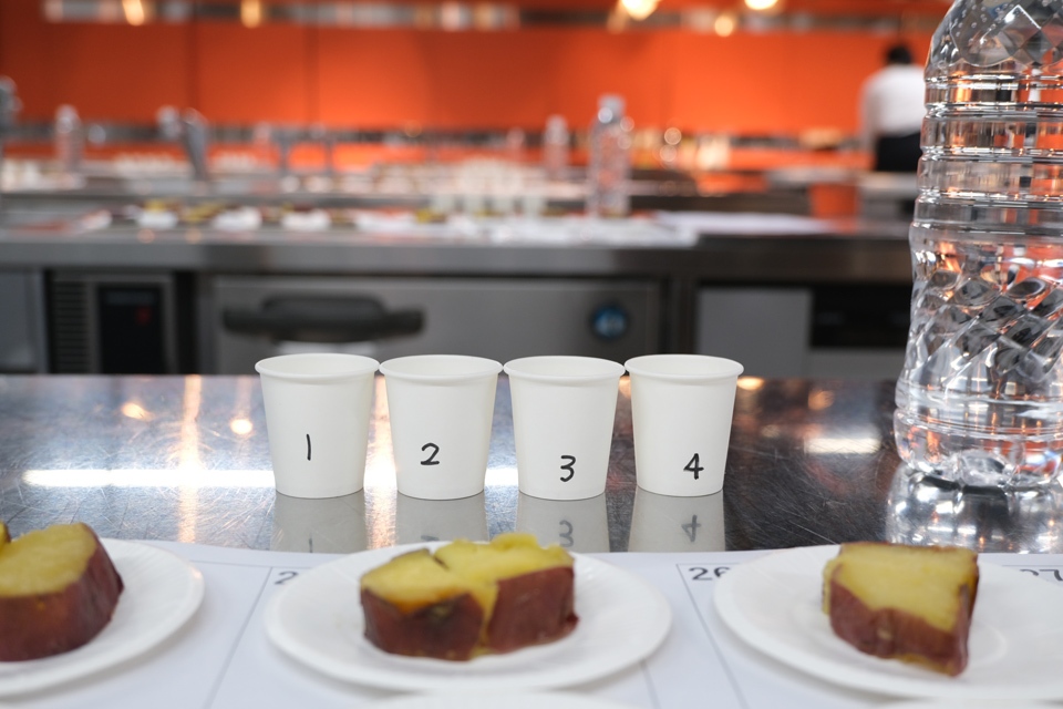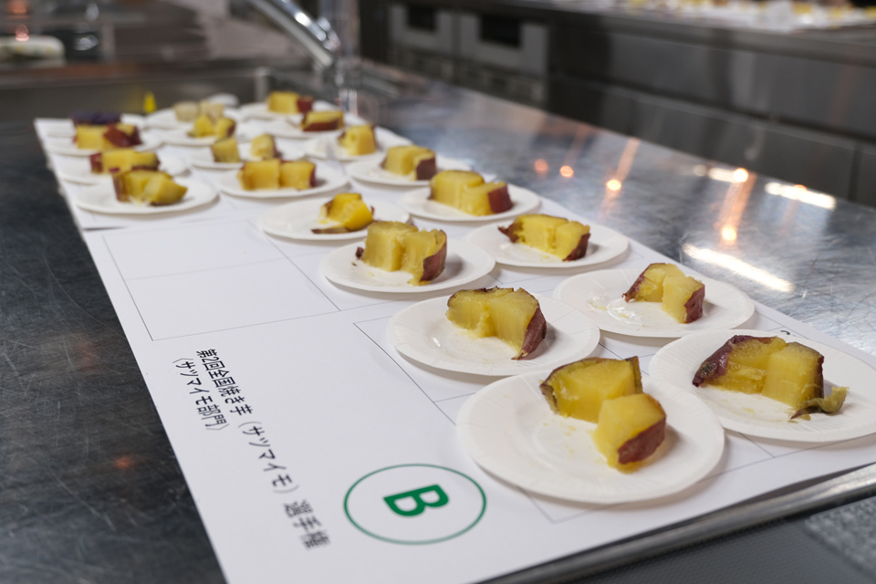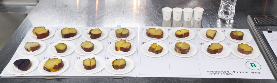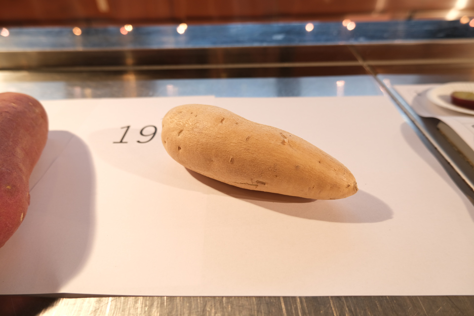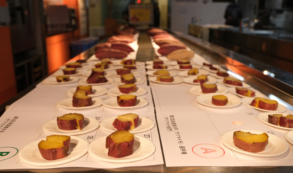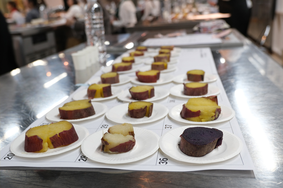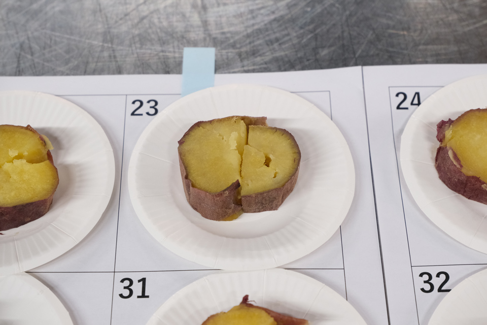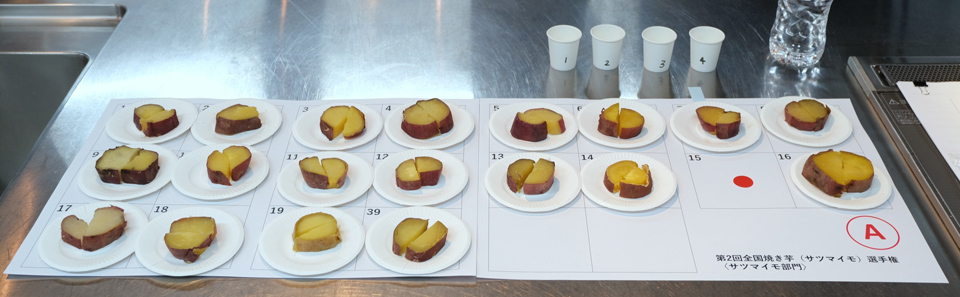 「サツマイモ」部門では、生イモを同じ条件で焼いて冷ましたものを審査します。冷めていてもふっくらしている姿はおいしそうな予感しかしません。