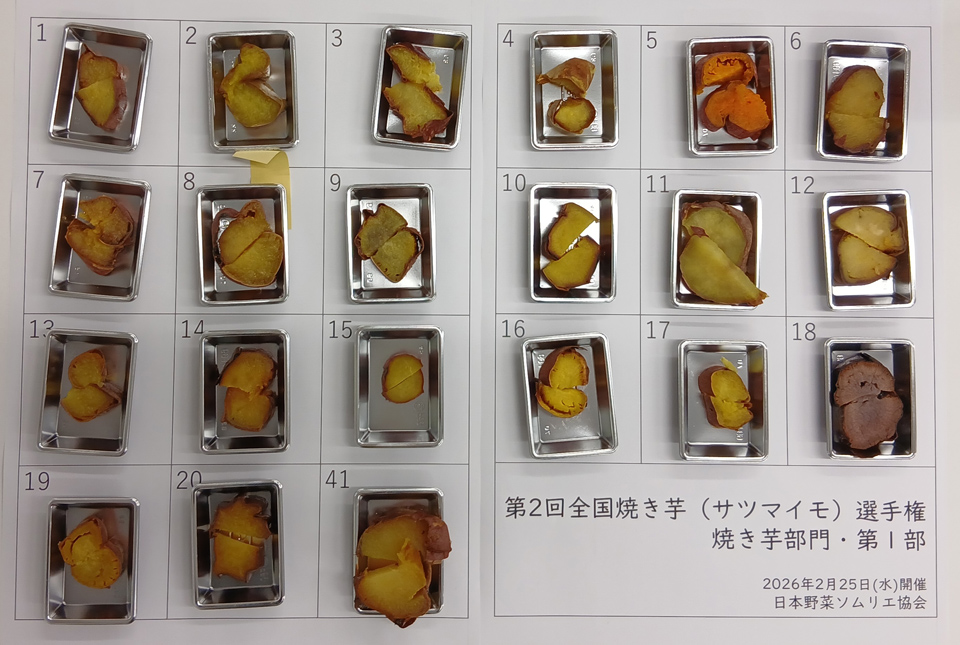 2026年2月25日、「第2回全国焼き芋(サツマイモ)選手権」が実施されました。全国から寄せられたサツマイモおよび焼き芋は全77品(サツマイモ部門37品・焼き芋部門40品)。2年前の第1回は東京会場のみで評価が行われましたが、第2回では生イモでエントリーする「サツマイモ」部門を東京会場で、冷蔵・冷凍など加工品でエントリーする「焼き芋」部門を大阪会場で評価が行われました。